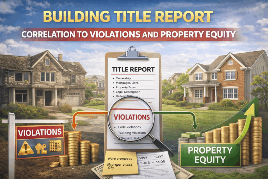 A title report shows legal ownership and encumbrances on a property (like liens, mortgages, and judgments). In NYC, building violations — especially unresolved ones — can show up as liens or encumbrances that impact a title, or they may not be fully reflected unless you know where to look.